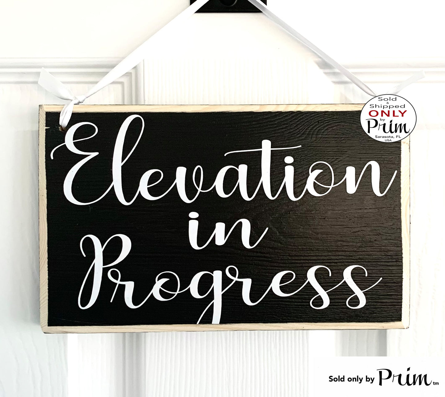 Custom Handmade ELEVATION IN PROGRESS wood sign measures 8" by 6".