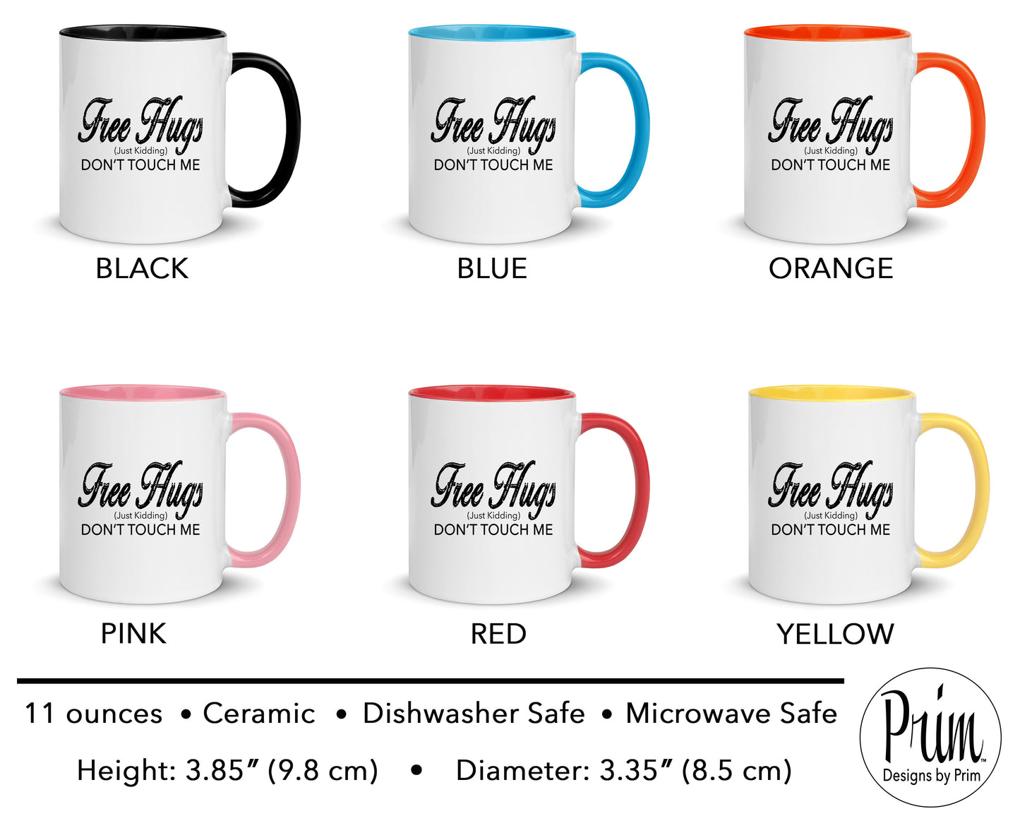 Free Hugs Just Kidding Don't Touch Me Funny Sarcastic 11 Ounce Ceramic Mug