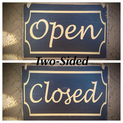 Custom Handmade OPEN/CLOSED Unique (front and back) wood sign measures 8" by 6".