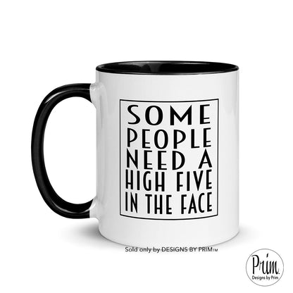 Some People Need a High Five In The Face 11 Ounce Ceramic Mug | Funny Sarcastic Agitated Annoyed Graphic Typography Coffee Tea Cup